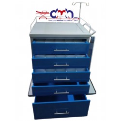 - Cinco gavetas con cierre seguro por medio de platina, las tres primeras con divisiones internas para organización de medicamentos y materiales.