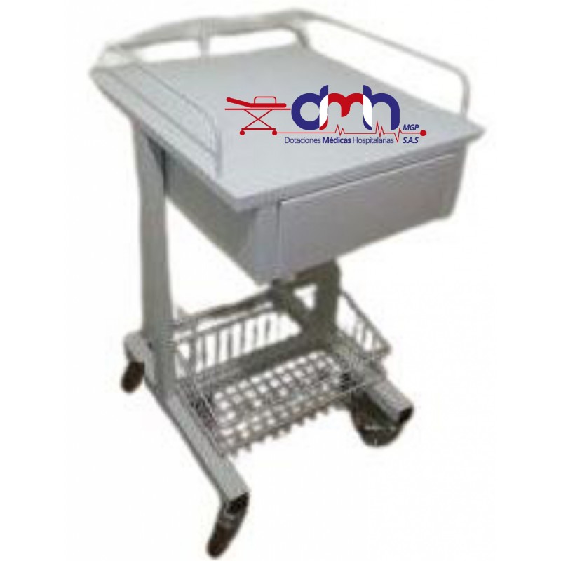Este carro está diseñado específicamente para el soporte y transporte de electrocardiógrafos, facilitando su movilidad dentro de entornos clínicos y hospitalarios. Fabricado con estructura metálica resistente y cubierta con pintura electrostática, ofrece una excelente durabilidad y protección contra la corrosión.