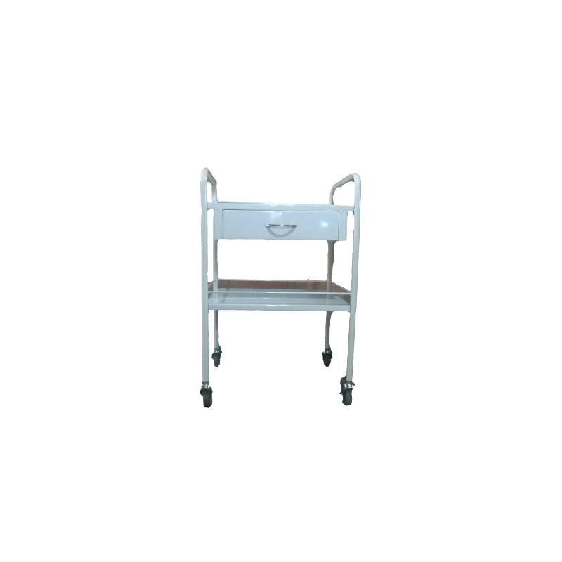 Esta mesa auxiliar pintada combina funcionalidad, durabilidad y facilidad de movilidad, siendo una herramienta indispensable en entornos sanitarios para apoyar diversas tareas médicas.