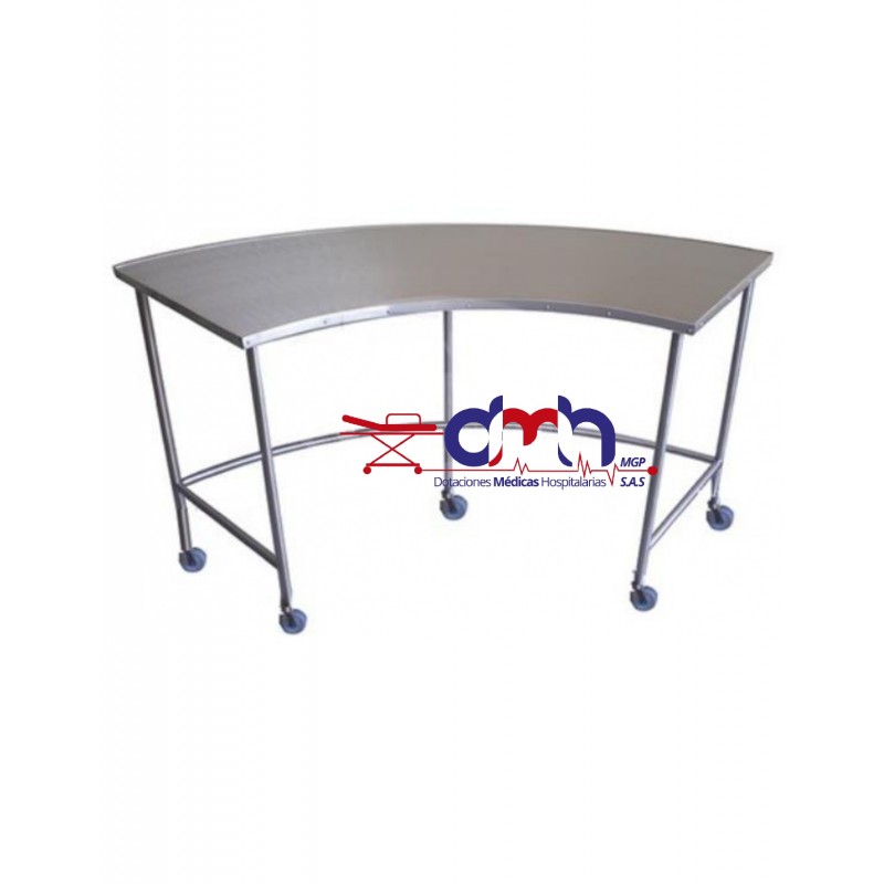 Mesa riñón fabricada en acero inoxidable .304, con cubierta de lámina pulida de acero inoxidable que facilita la limpieza y desinfección. Estructura robusta en acero inoxidable con diseño ergonómico tipo célula de trabajo, equipada con barandales para evitar caída de instrumentos y seis ruedas de hule termoplástico para fácil movilidad y estabilidad. Ideal para uso quirúrgico y hospitalario, permite organizar y trasladar instrumental médico y suministros con seguridad y funcionalidad.